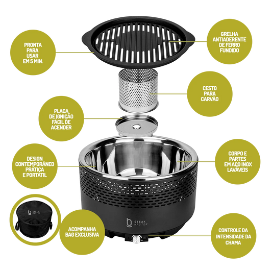 Churrasqueira Portátil a Carvão - Master Smoke & Fire USB