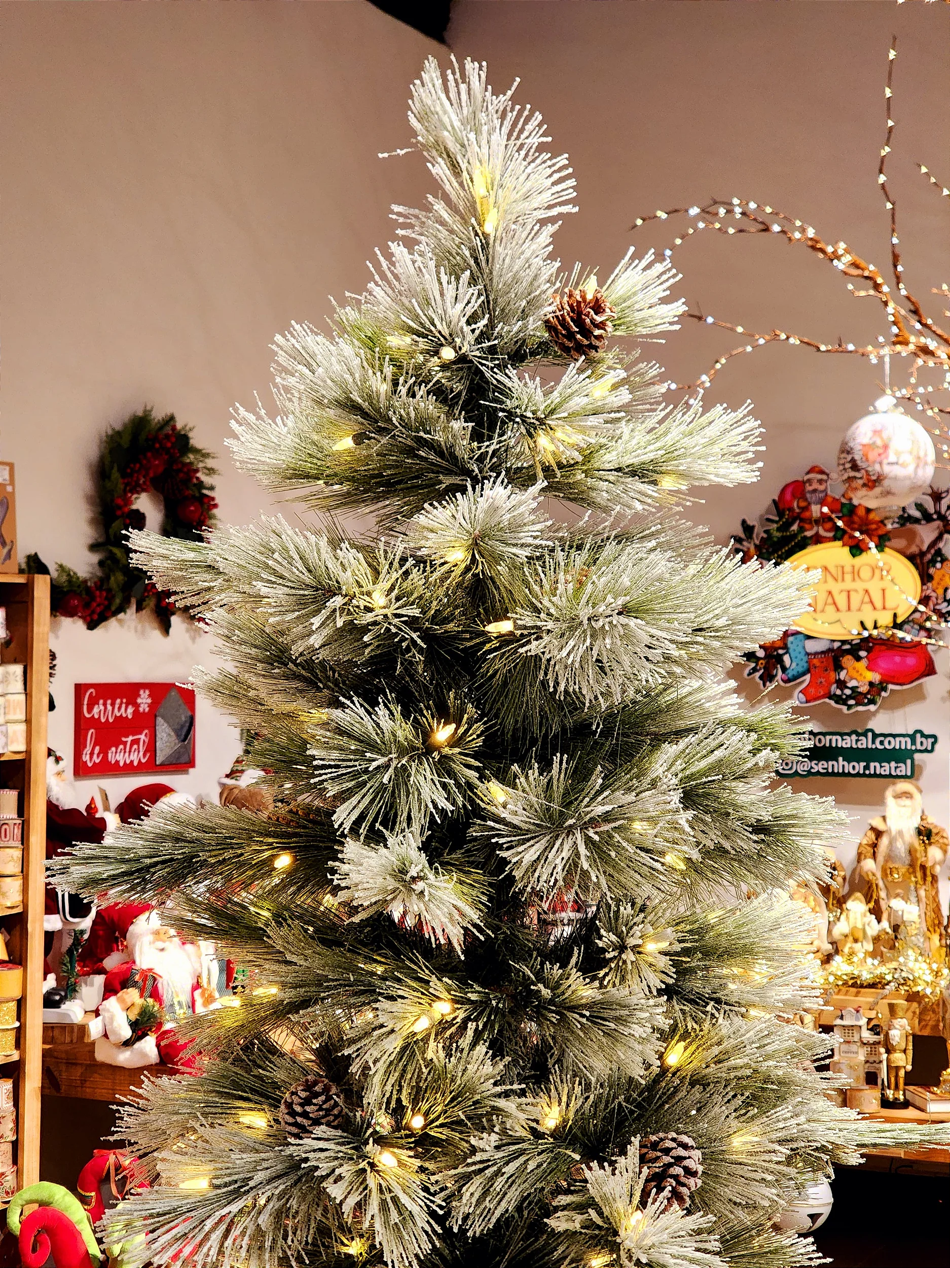 LANÇAMENTO ÁRVORE NASSAU COM LED SISTEMA PLUG NO TRONCO DA ÁRVORE TEM UM SISTEMA DE LIGAÇÃO POR PLUG RAPIDO, GALHOS NEVADOS COM PINHA E UM PISCA WARM RETRO DEIXAM ÁRVORE AINDA MAIS BELA.