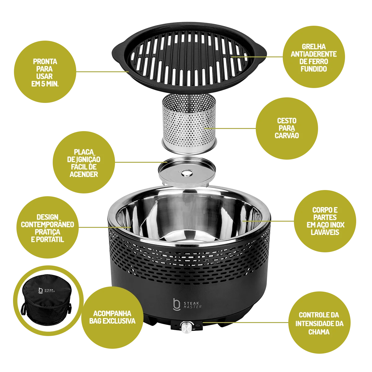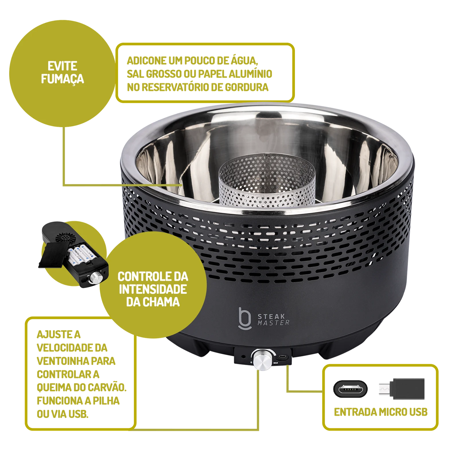 Churrasqueira Portátil a Carvão - Master Smoke & Fire USB