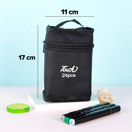 - Contém: 1 Estojo com Alça e 24 Canetinhas Coloridas.