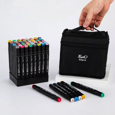 O Estojo de Canetinhas Escolar Ponta Dupla 60 Cores é ideal para soltar a criatividade com praticidade e elegância.