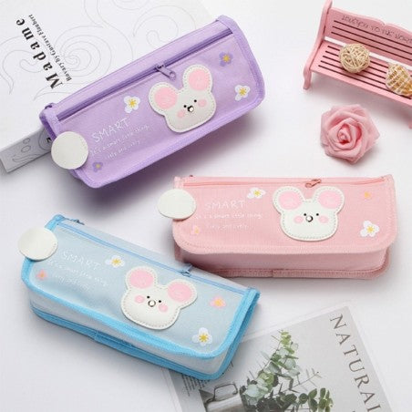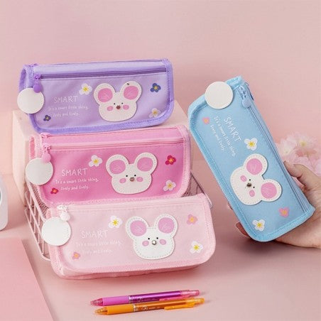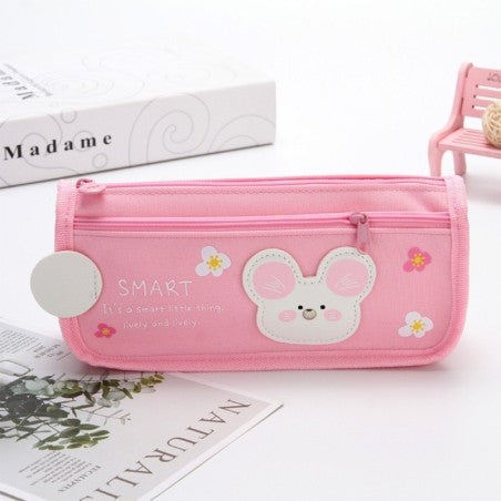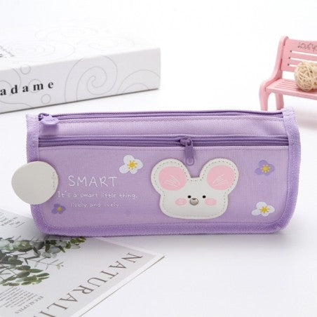 Estojo infantil feminino Ratinho com 2 compartimentos. Fofo e funcional, ideal para organizar lápis, canetas e acessórios escolares com praticidade e charme.