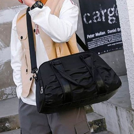 Mala de mão média unissex esportiva com alça dupla e design impermeável. Perfeita para viagens, academia e atividades diárias com espaço e segurança!